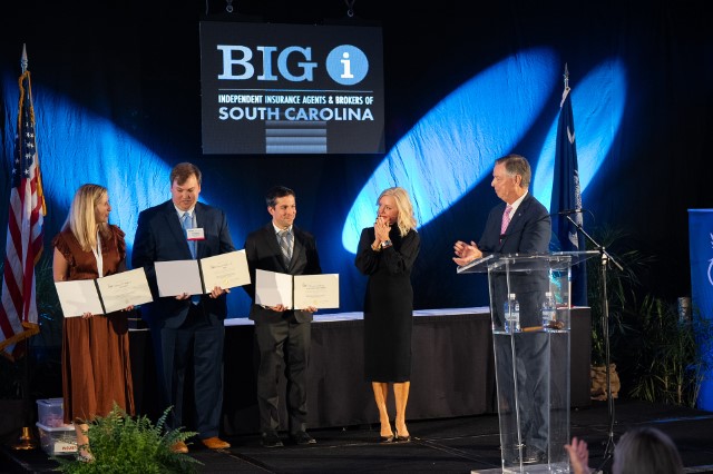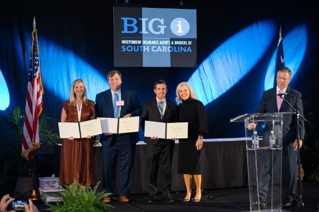 Retiring directors A. Zander Galloway, CIC, CRA, CWCA, ACRA of Peoples First Insurance in Rock Hill, Lauren T. Huffman, CIC, AAI, of The Taylor Agency in Charleston, SC, and R. Lawson Walker, Jr., CIC, of CSP Insurance Services in Florence, SC, were recognized for their service and dedication to the association.