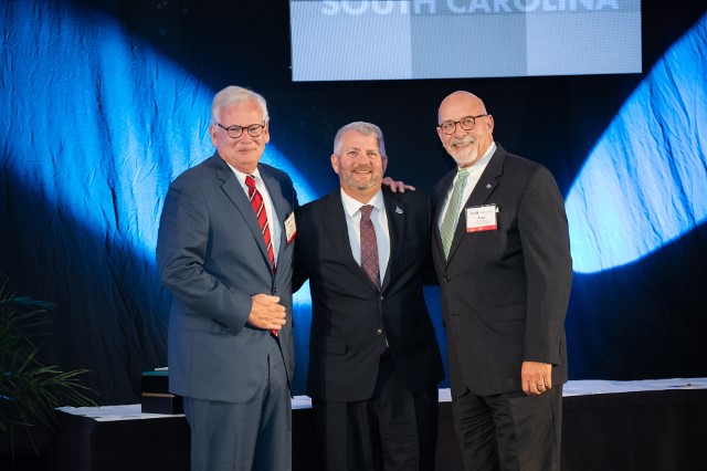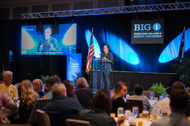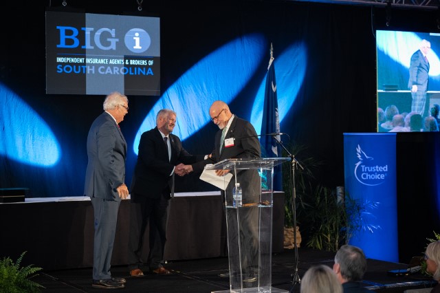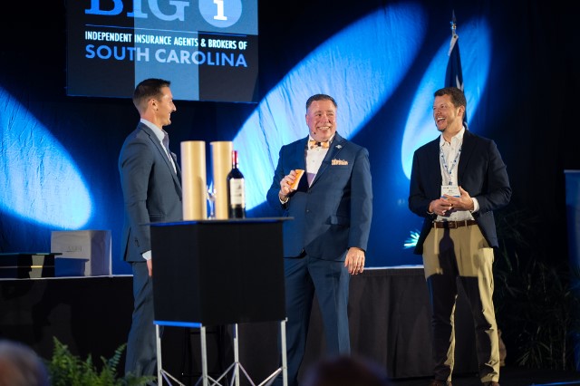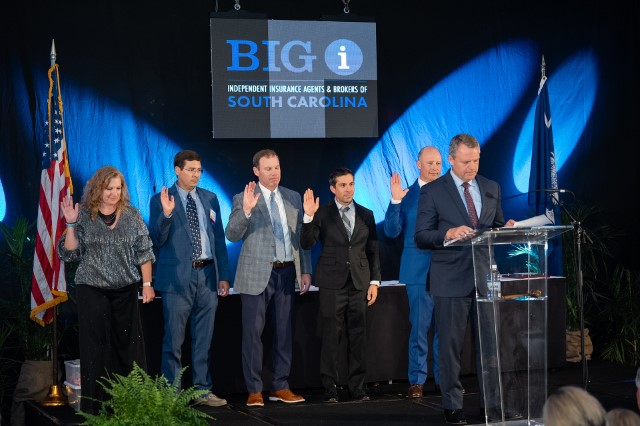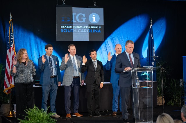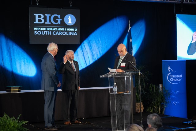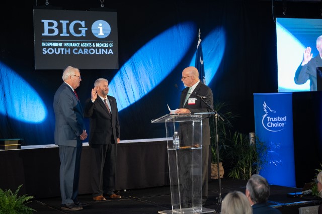 IIABA Chair of the Board Todd Jackson, CIC, Jules Anderson, AAI, of Anderson Insurance Associates Inc in Charleston, SC, and Thomas Bates Jr of Stokes-Farnham Insurance Agency in Travelers Rest, SC delivered oaths of office.
